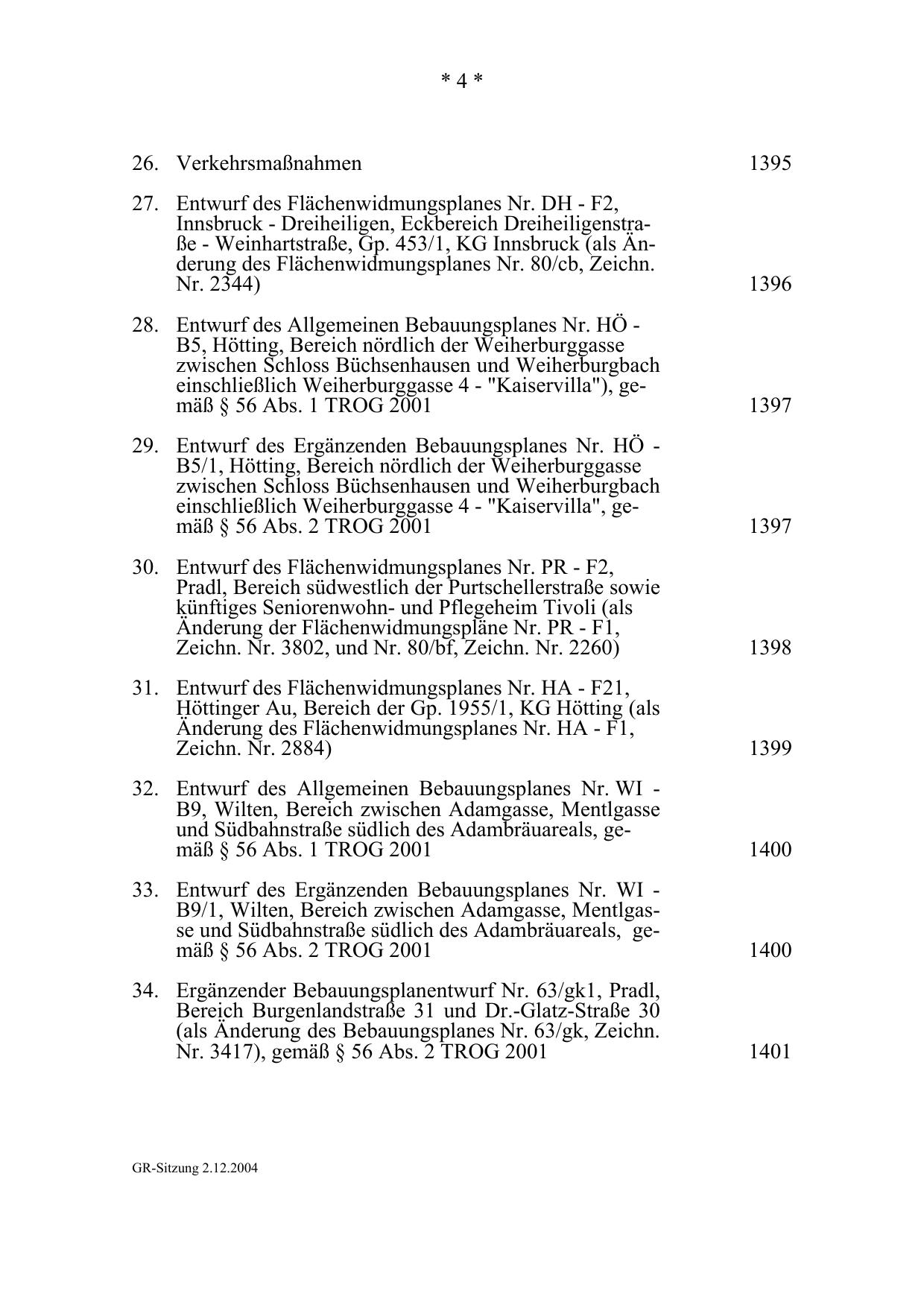 34. Ergänzender Bebauungsplanentwurf Nr. 63/gk1, Pradl,
