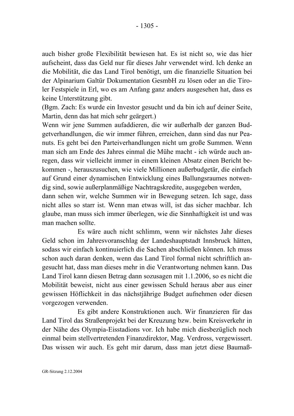 Land Tirol kann diesen Betrag dann sozusagen mit 1.1.2006, so es nicht die