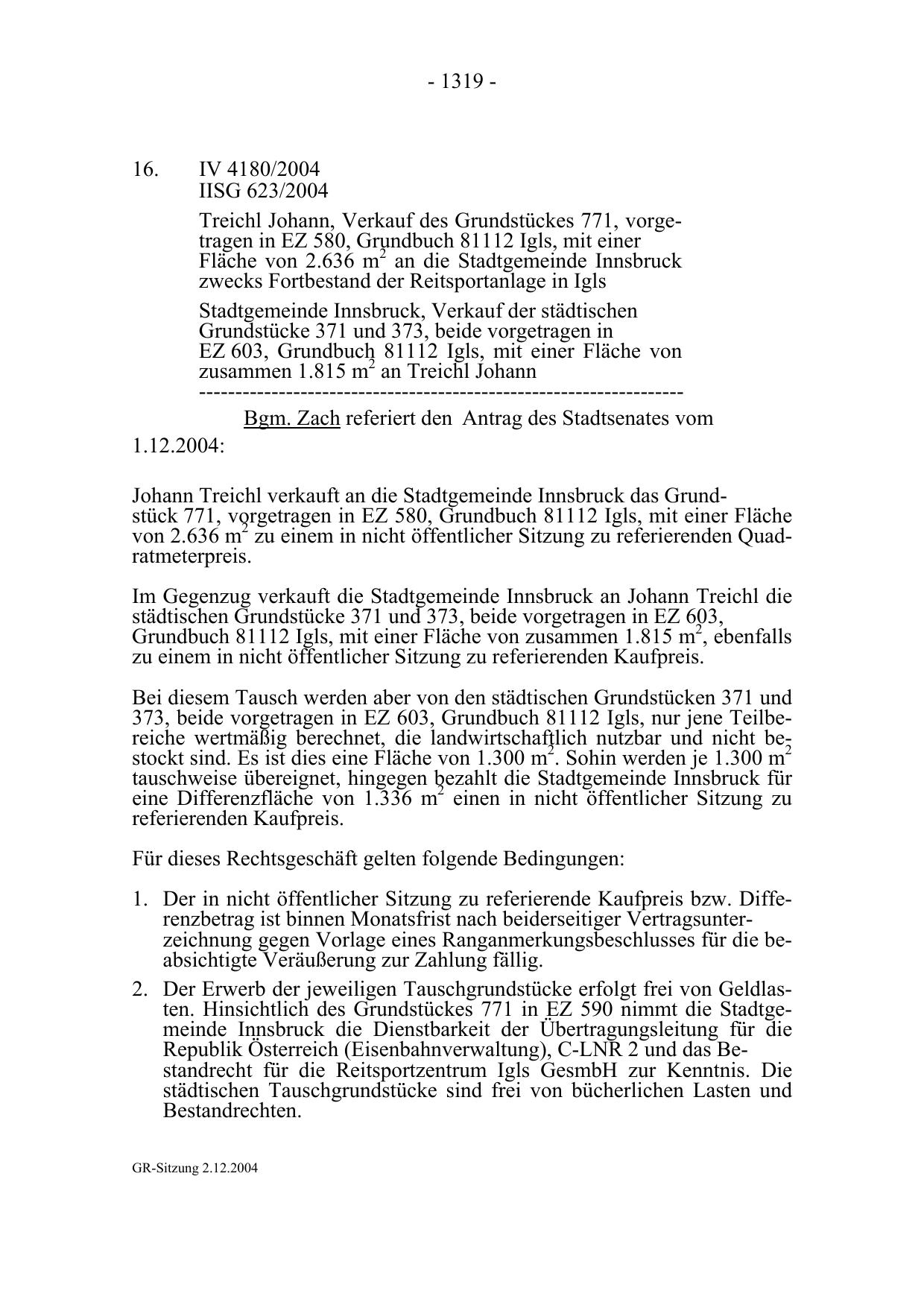 Fläche von 2.636 m an die Stadtgemeinde Innsbruck