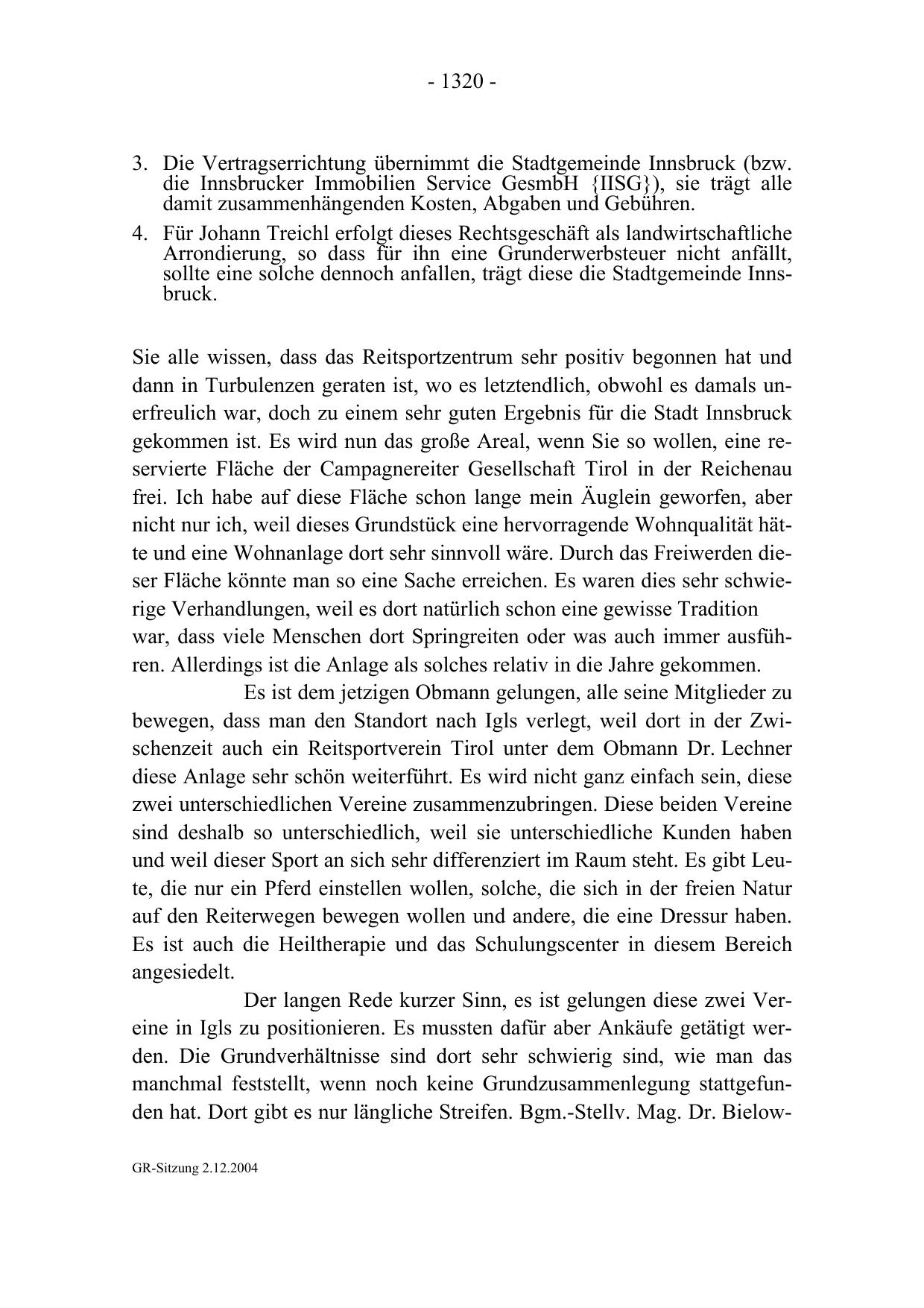 bewegen, dass man den Standort nach Igls verlegt, weil dort in der Zwischenzeit auch ein Reitsportverein Tirol unter dem Obmann Dr. Lechner