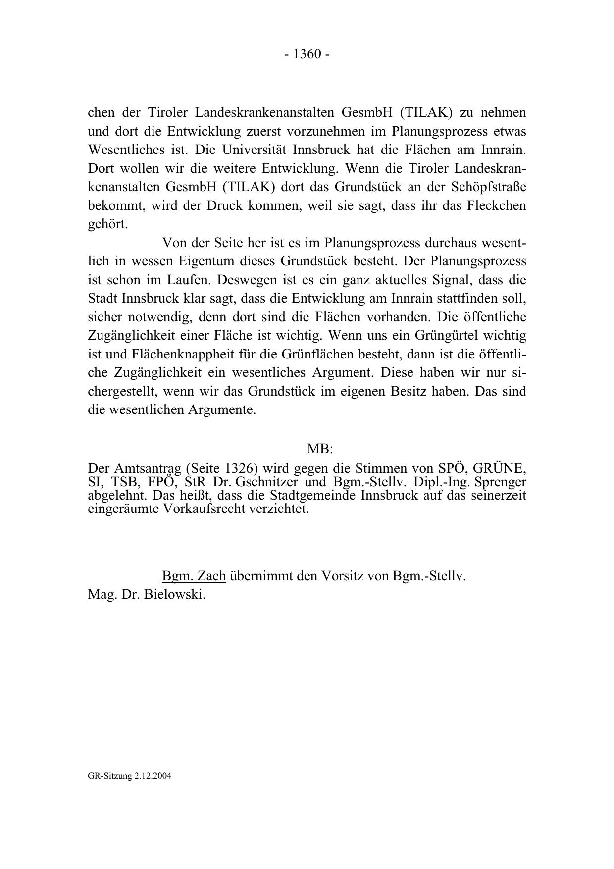 abgelehnt. Das heißt, dass die Stadtgemeinde Innsbruck auf das seinerzeit