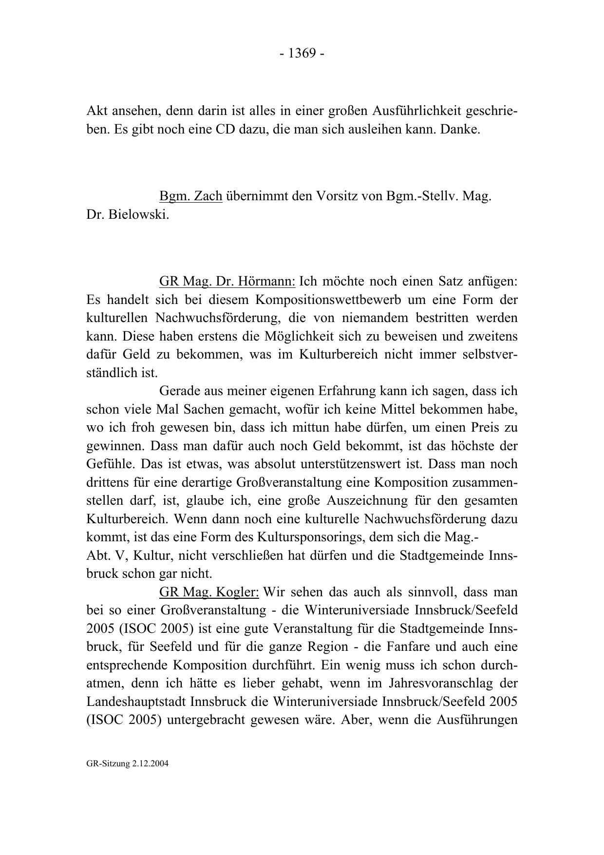 2005 (ISOC 2005) ist eine gute Veranstaltung für die Stadtgemeinde Innsbruck, für Seefeld und für die ganze Region - die Fanfare und auch eine