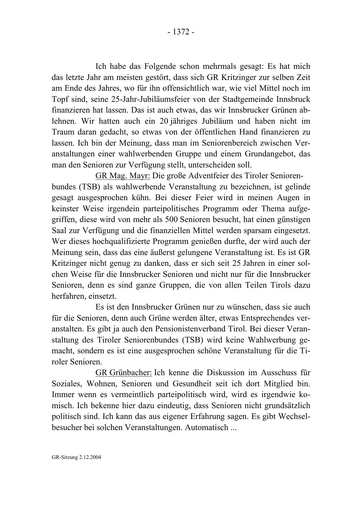 finanzieren hat lassen. Das ist auch etwas, das wir Innsbrucker Grünen ablehnen. Wir hatten auch ein 20 jähriges Jubiläum und haben nicht im