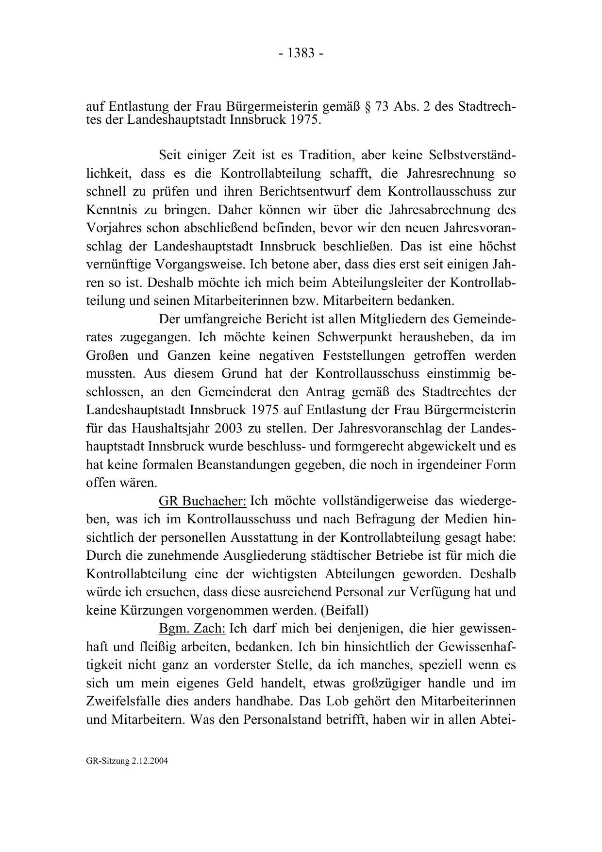 und Mitarbeitern. Was den Personalstand betrifft, haben wir in allen AbteiGR-Sitzung 2.12.2004