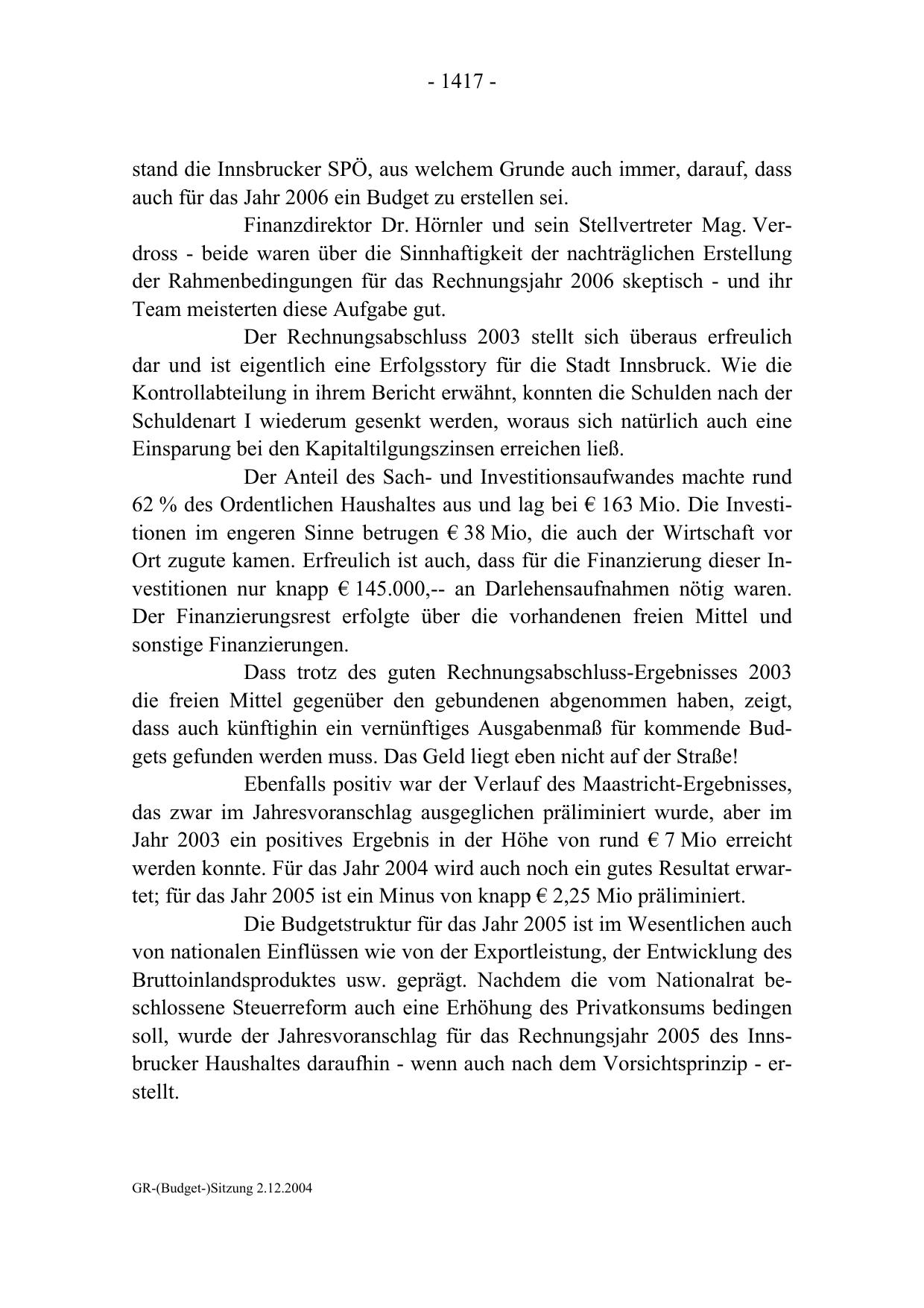 Dass trotz des guten Rechnungsabschluss-Ergebnisses 2003