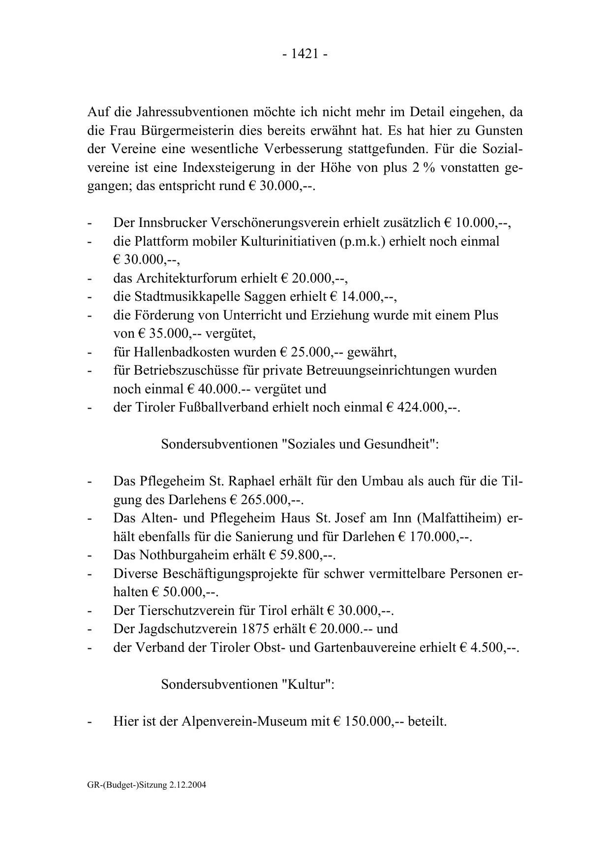 der Vereine eine wesentliche Verbesserung stattgefunden. Für die Sozialvereine ist eine Indexsteigerung in der Höhe von plus 2 % vonstatten gegangen; das entspricht rund € 30.000,--.