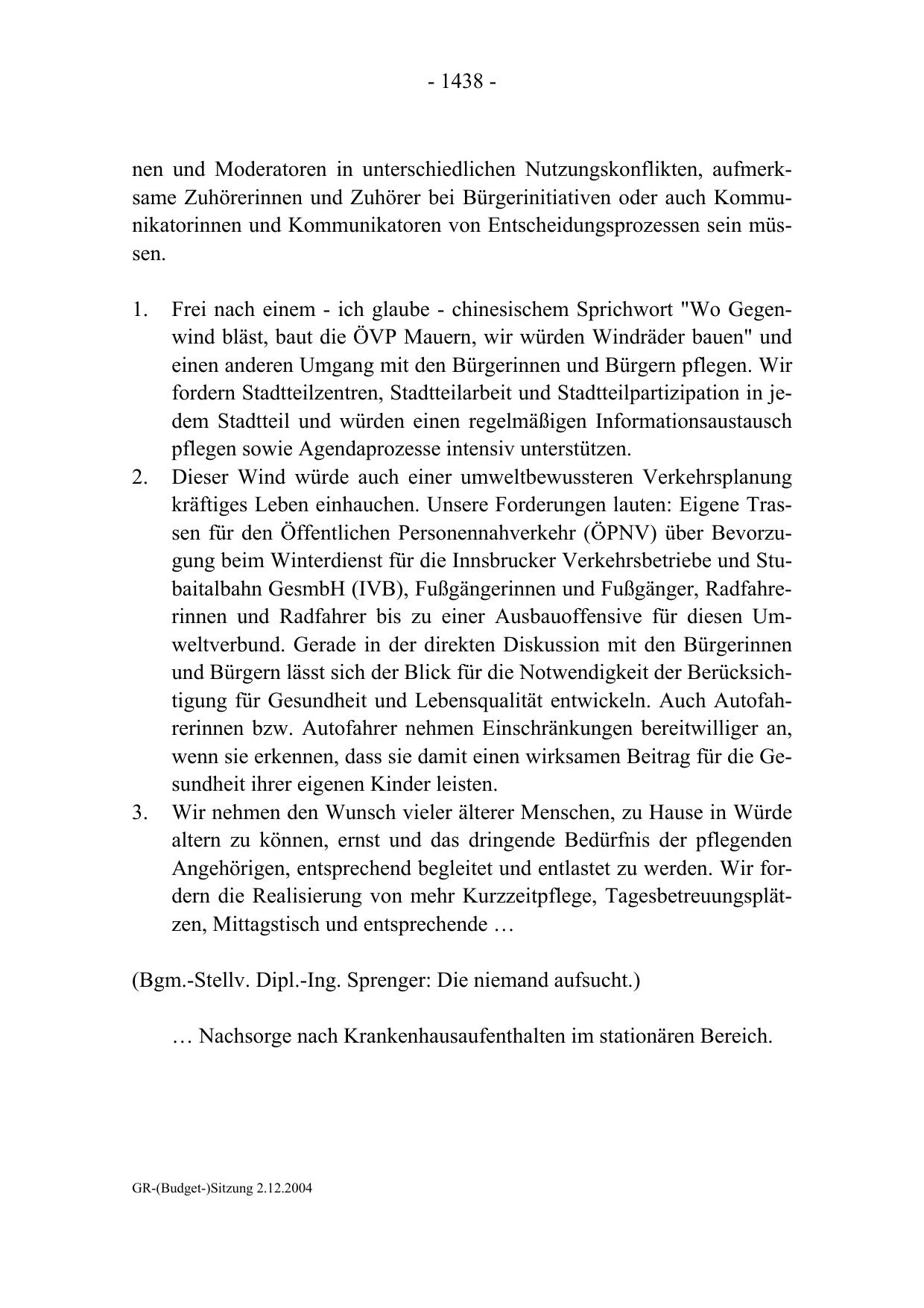 GR-(Budget-)Sitzung 2.12.2004