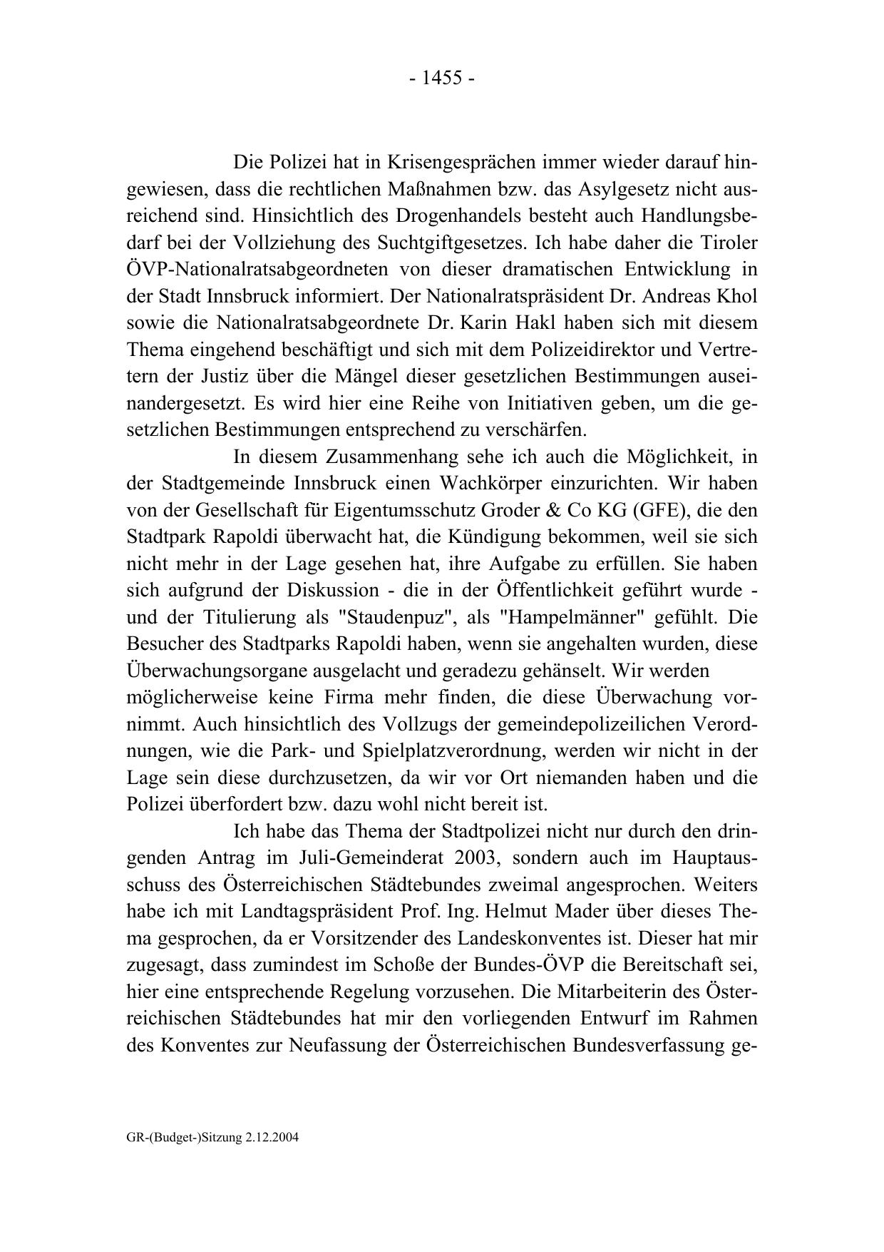 GR-(Budget-)Sitzung 2.12.2004
