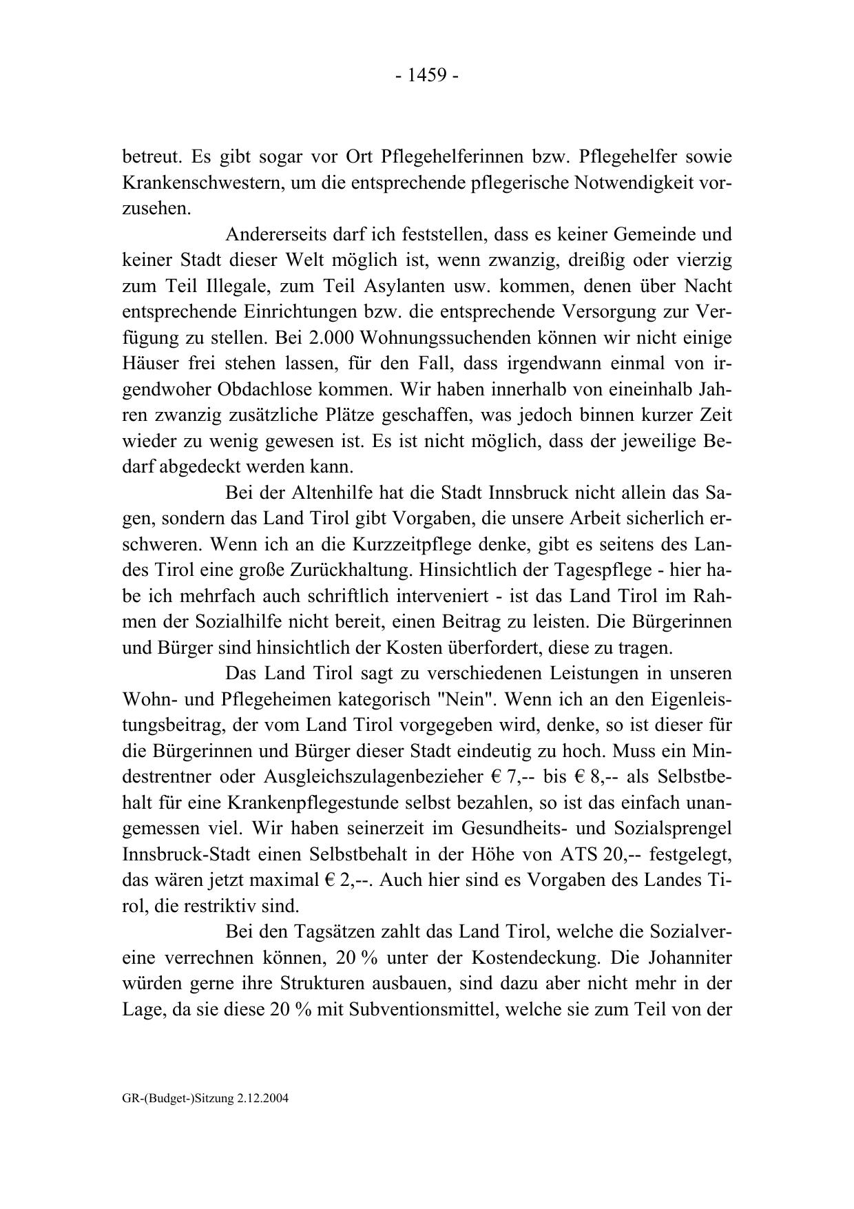 GR-(Budget-)Sitzung 2.12.2004