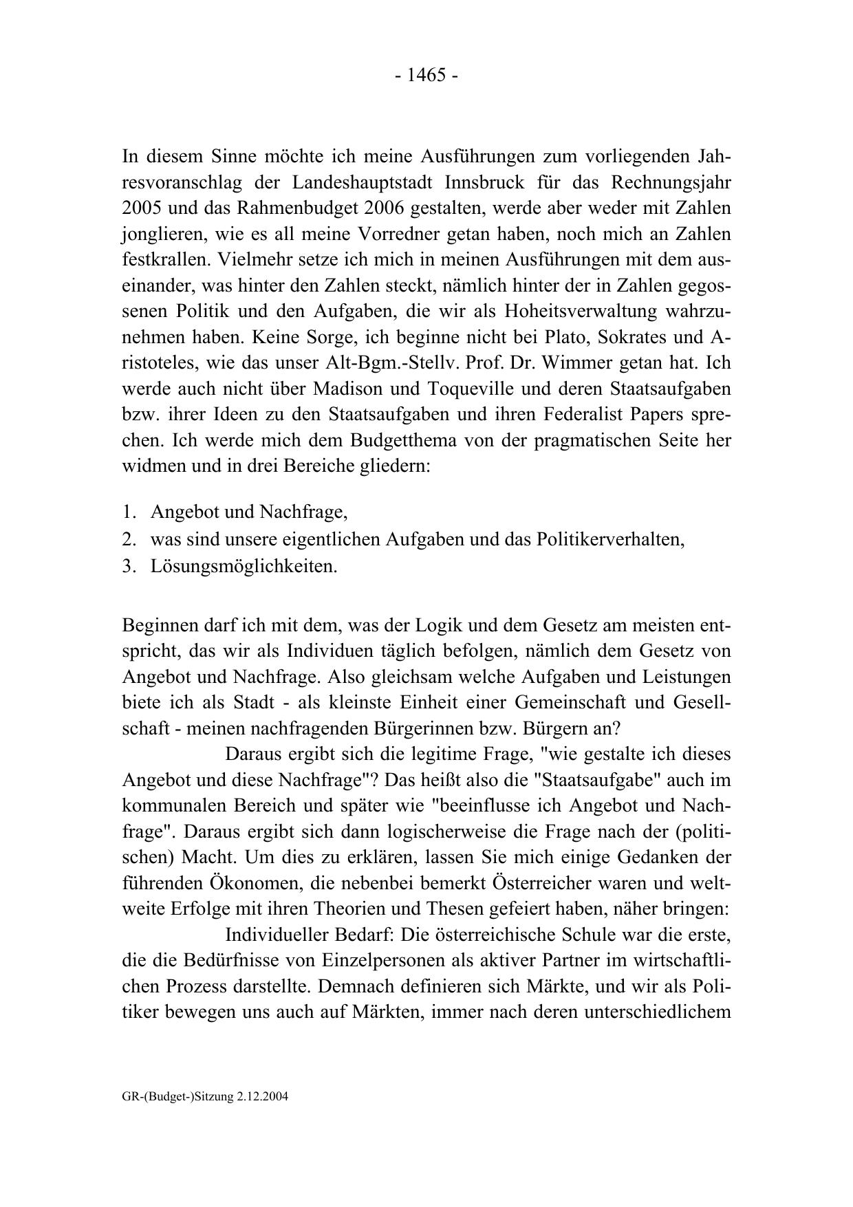 GR-(Budget-)Sitzung 2.12.2004