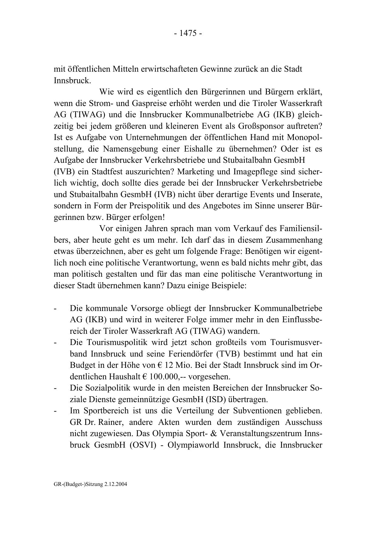 GR-(Budget-)Sitzung 2.12.2004