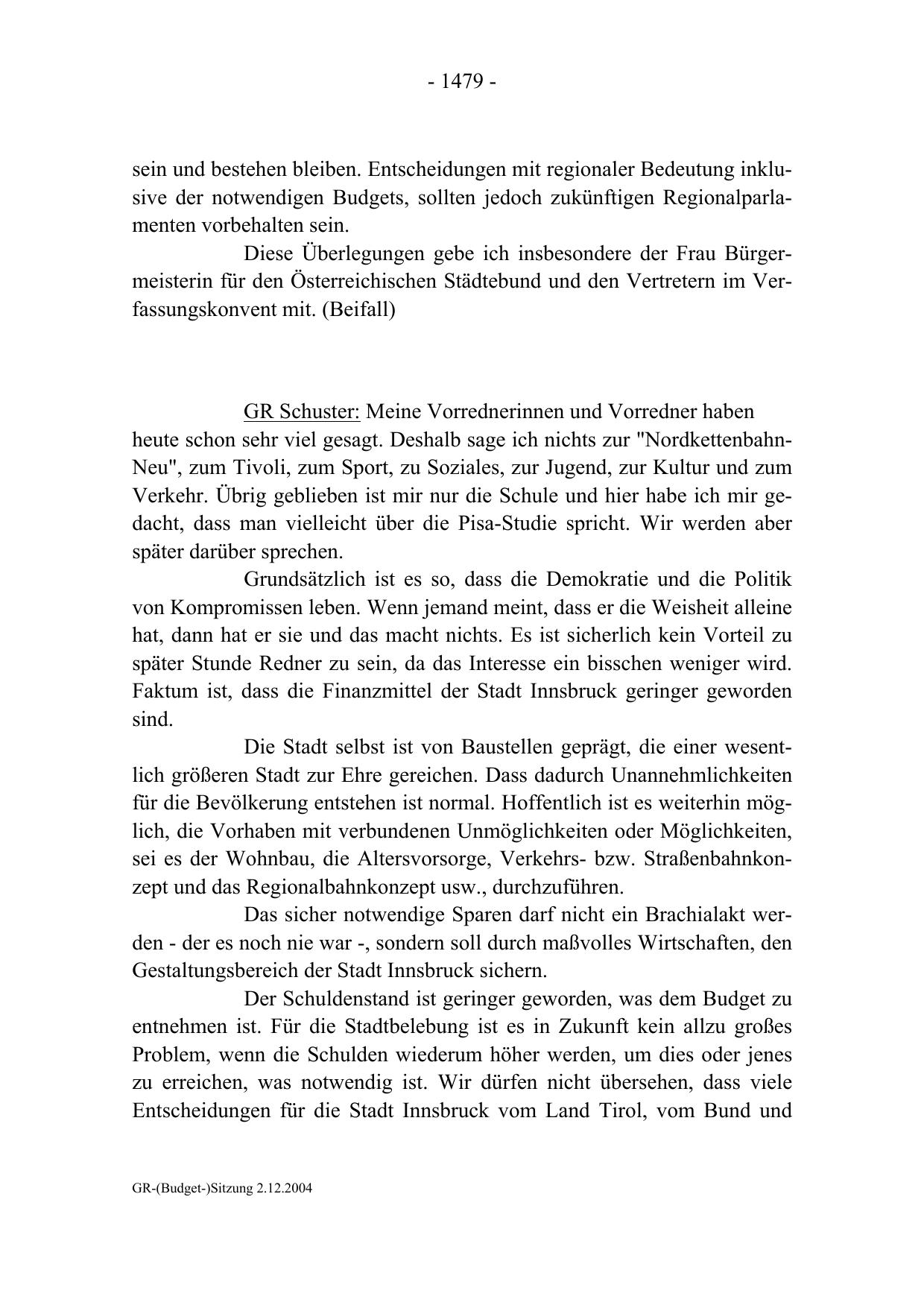 GR-(Budget-)Sitzung 2.12.2004