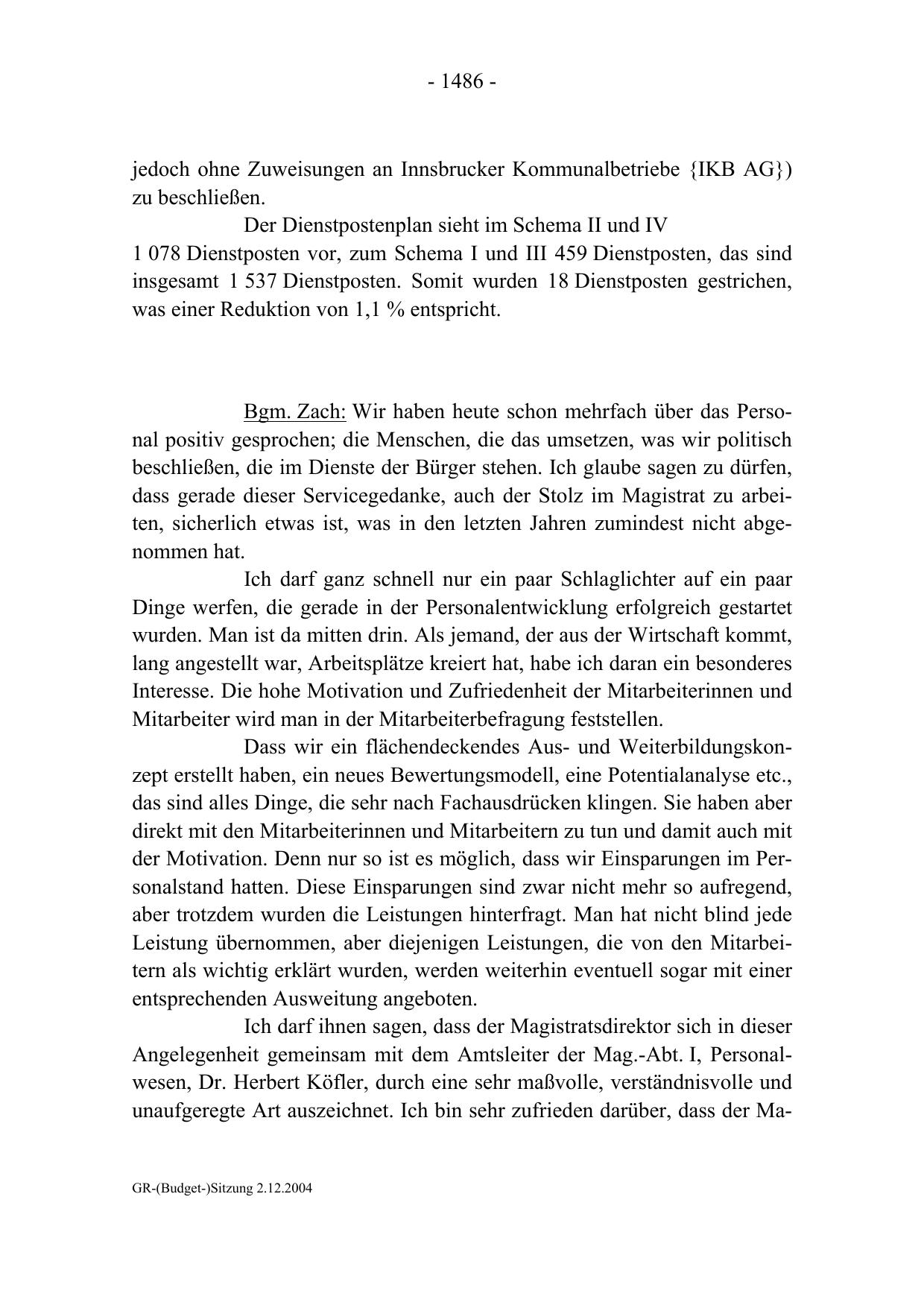 Bgm. Zach: Wir haben heute schon mehrfach über das Personal positiv gesprochen; die Menschen, die das umsetzen, was wir politisch
