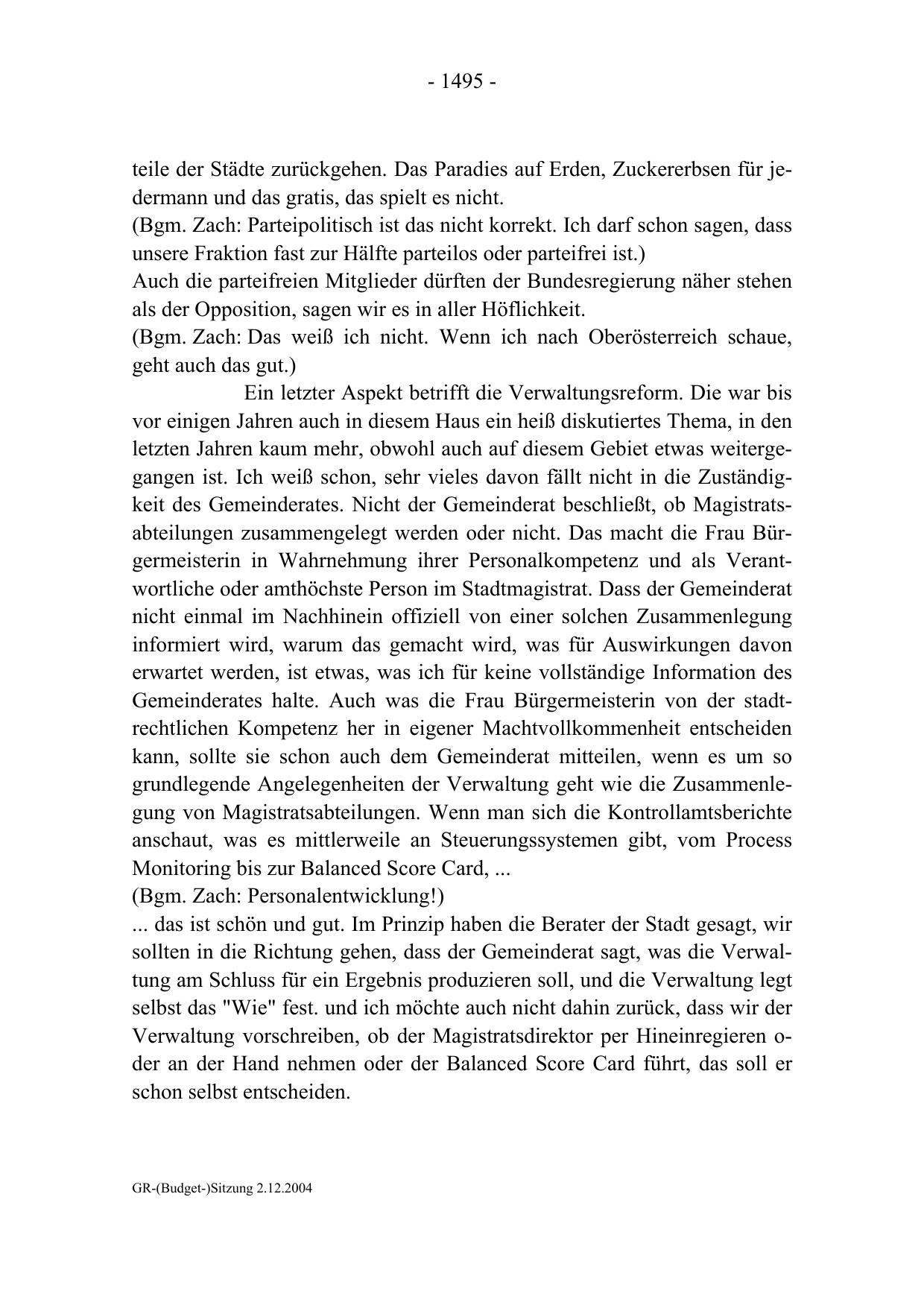 (Bgm. Zach: Parteipolitisch ist das nicht korrekt. Ich darf schon sagen, dass