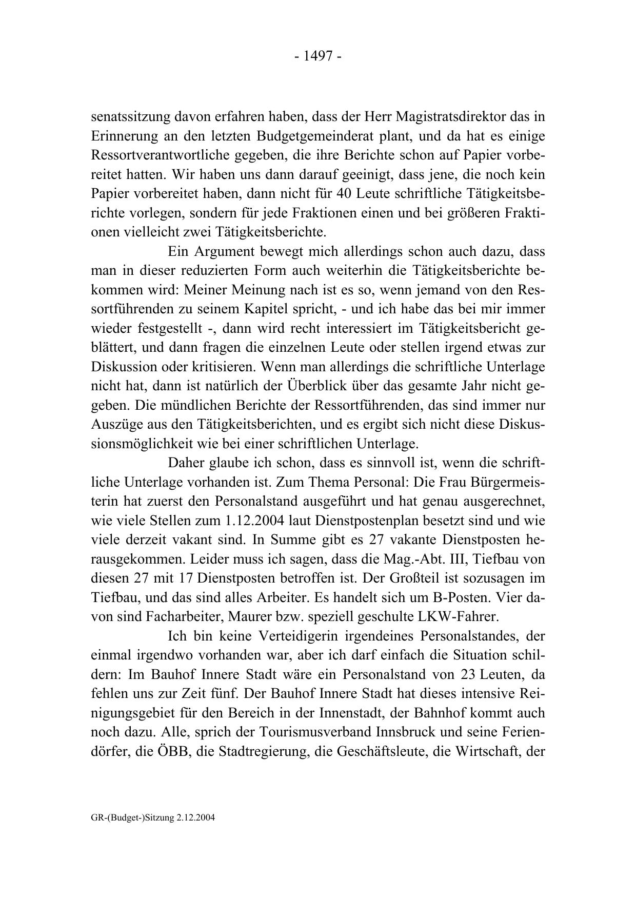 GR-(Budget-)Sitzung 2.12.2004