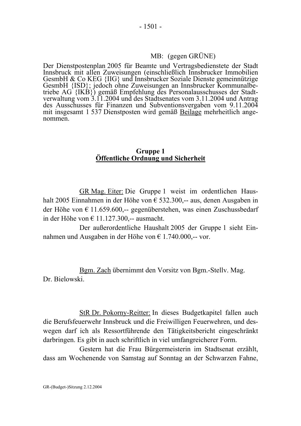 GR-(Budget-)Sitzung 2.12.2004