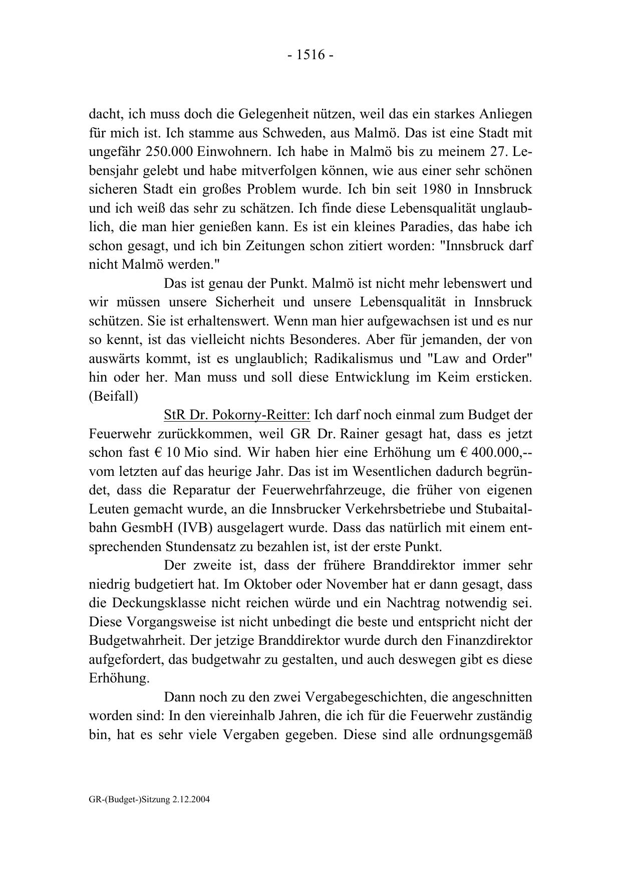 Leuten gemacht wurde, an die Innsbrucker Verkehrsbetriebe und Stubaitalbahn GesmbH (IVB) ausgelagert wurde. Dass das natürlich mit einem entsprechenden Stundensatz zu bezahlen ist, ist der erste Punkt.