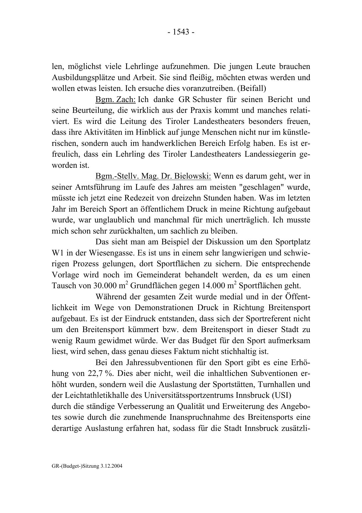 Bgm. Zach: Ich danke GR Schuster für seinen Bericht und