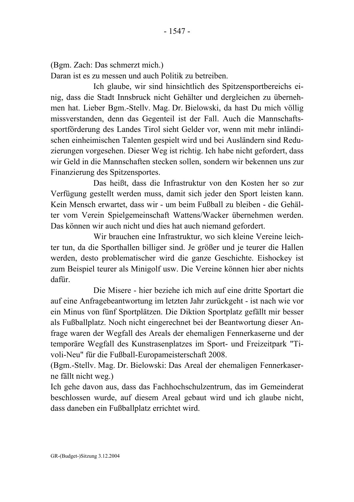 GR-(Budget-)Sitzung 3.12.2004