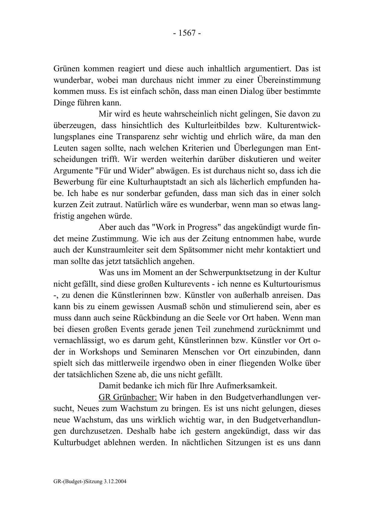 GR-(Budget-)Sitzung 3.12.2004
