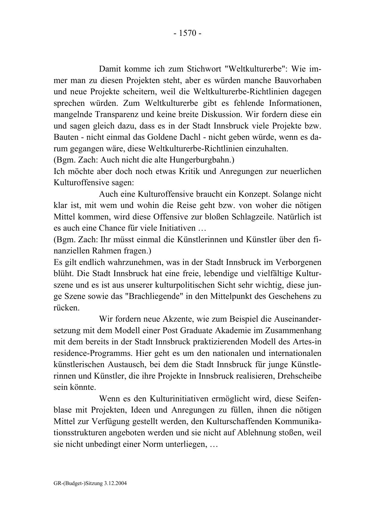 GR-(Budget-)Sitzung 3.12.2004