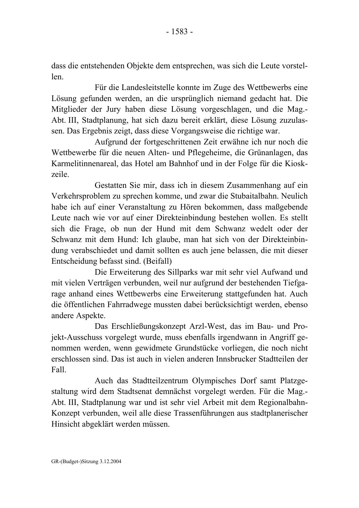 GR-(Budget-)Sitzung 3.12.2004