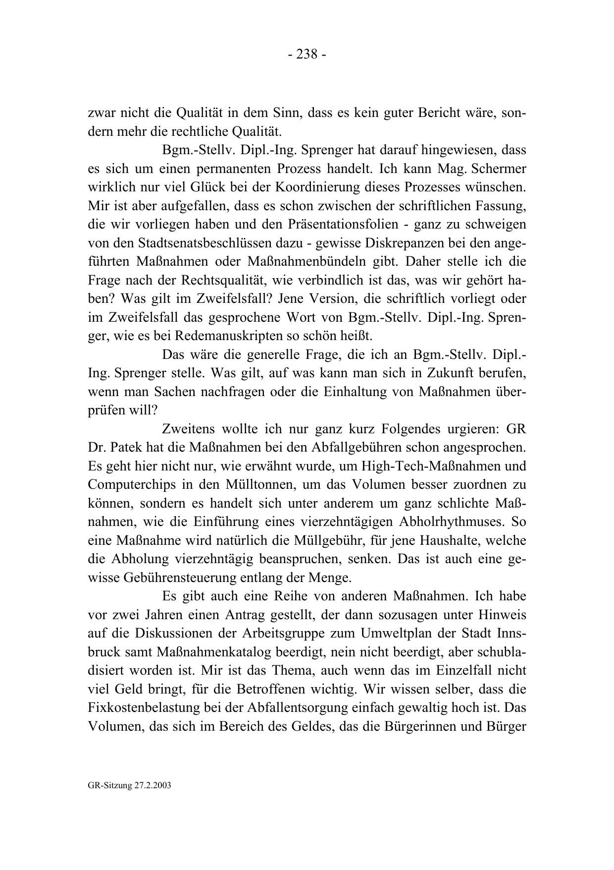 im Zweifelsfall das gesprochene Wort von Bgm.-Stellv. Dipl.-Ing. Sprenger, wie es bei Redemanuskripten so schön heißt.