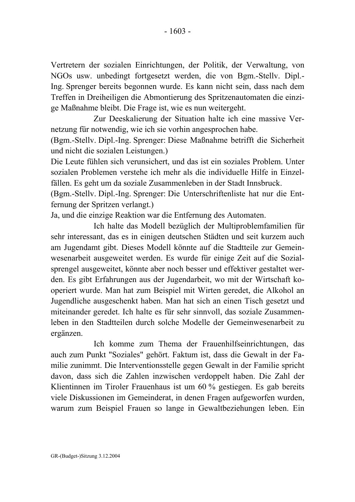 GR-(Budget-)Sitzung 3.12.2004