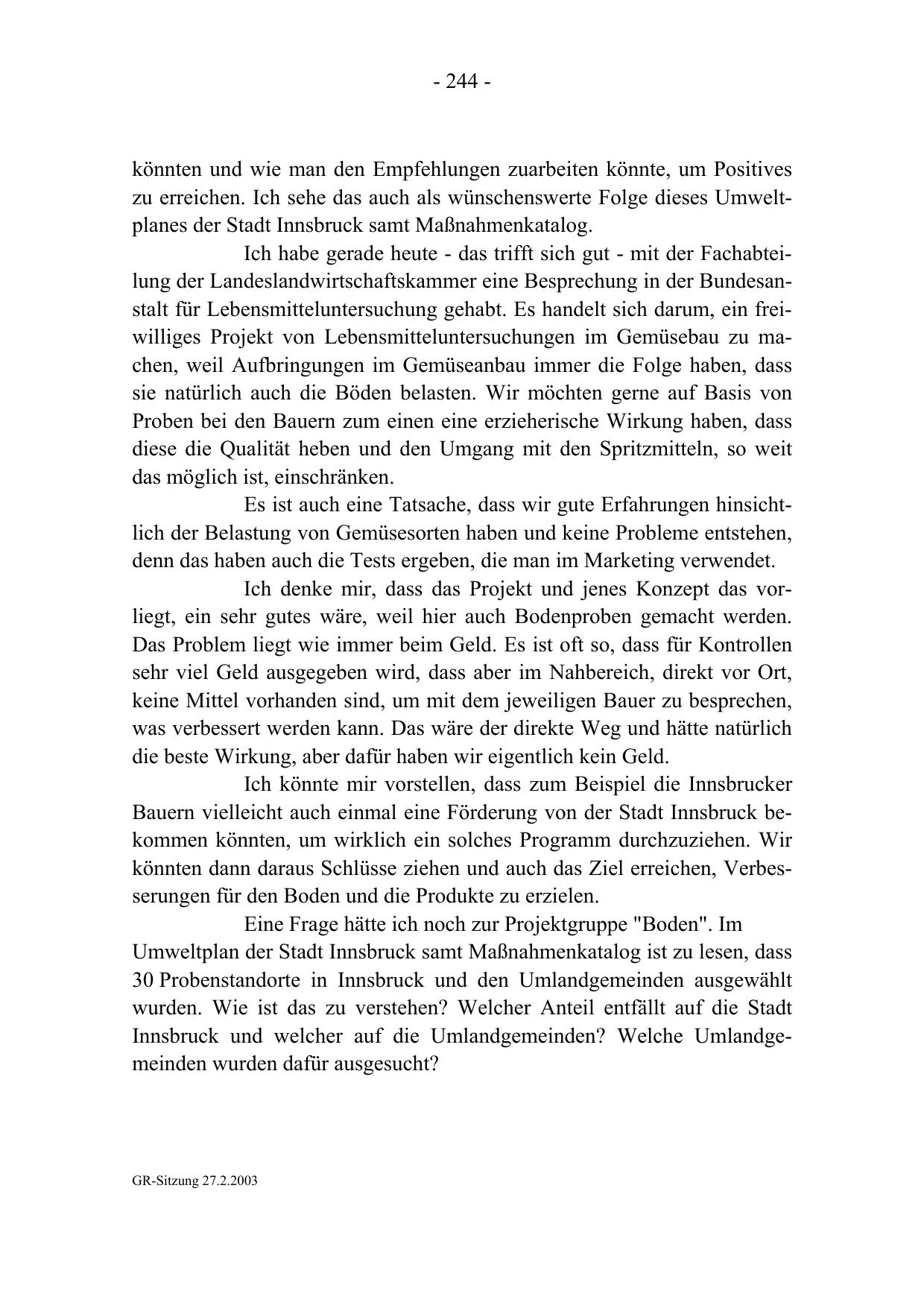 zu erreichen. Ich sehe das auch als wünschenswerte Folge dieses Umweltplanes der Stadt Innsbruck samt Maßnahmenkatalog.