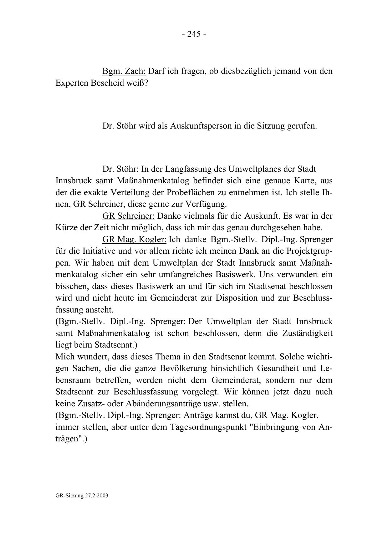 (Bgm.-Stellv. Dipl.-Ing. Sprenger: Der Umweltplan der Stadt Innsbruck