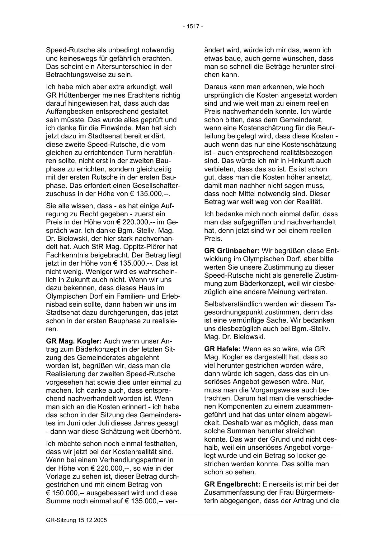 Summe noch einmal auf € 135.000,-- verGR-Sitzung 15.12.2005