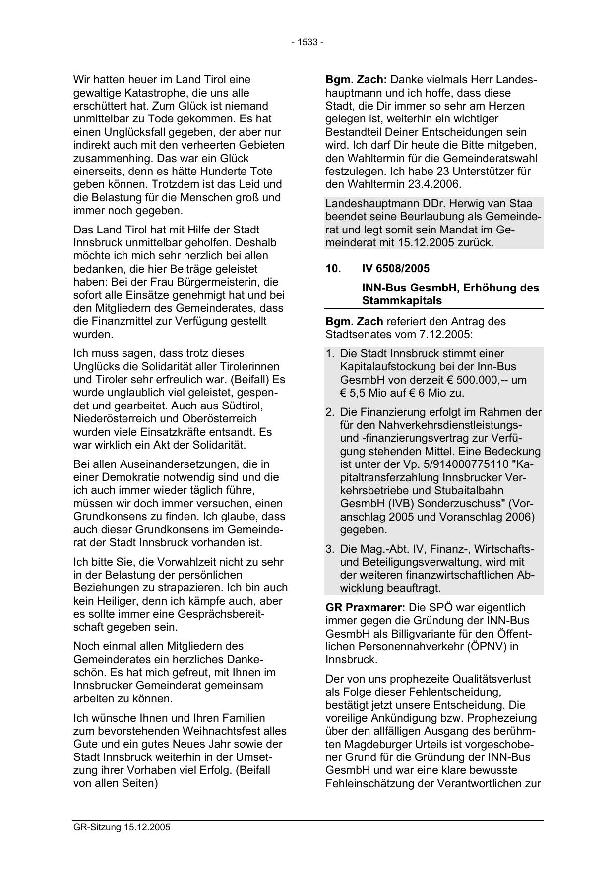 Stadt Innsbruck weiterhin in der Umsetzung ihrer Vorhaben viel Erfolg. (Beifall