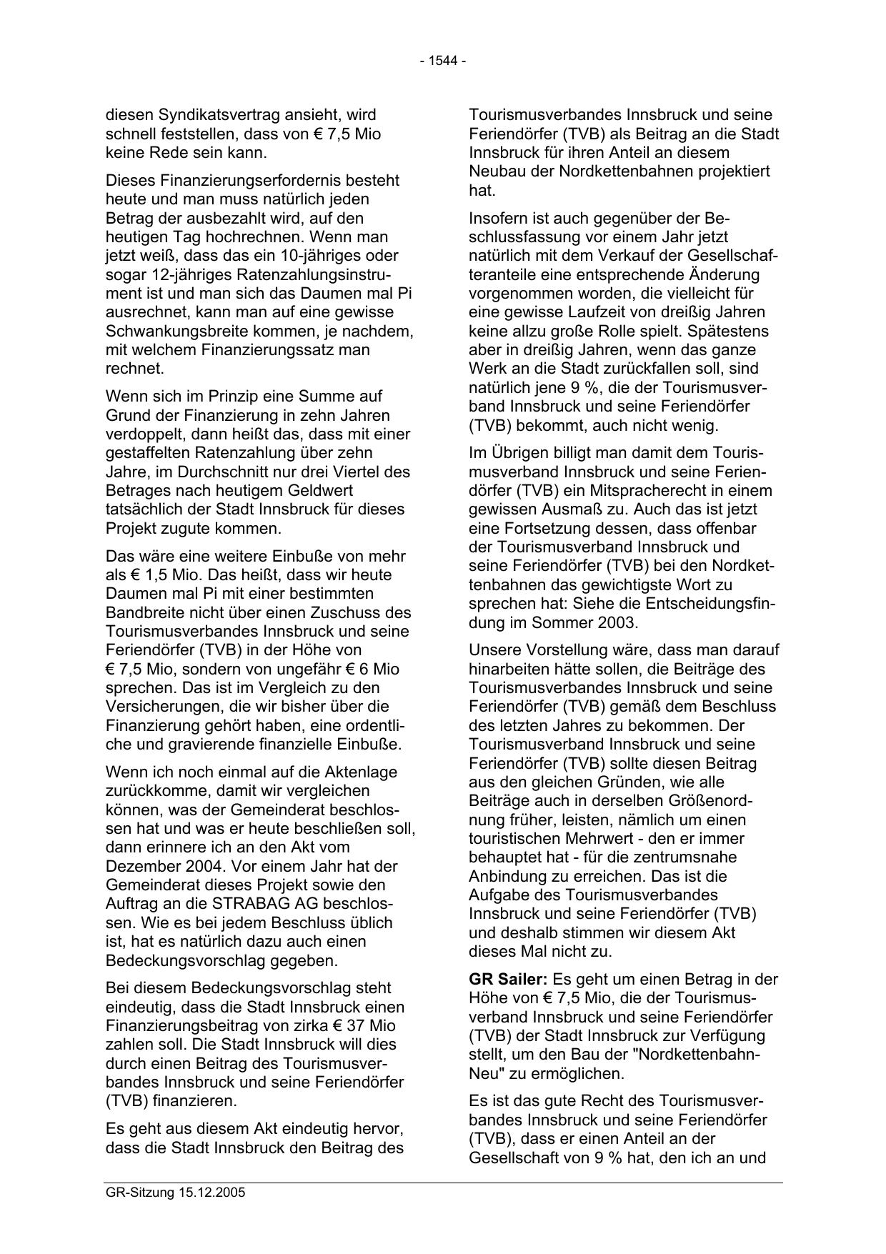 Im Übrigen billigt man damit dem Tourismusverband Innsbruck und seine Feriendörfer (TVB) ein Mitspracherecht in einem