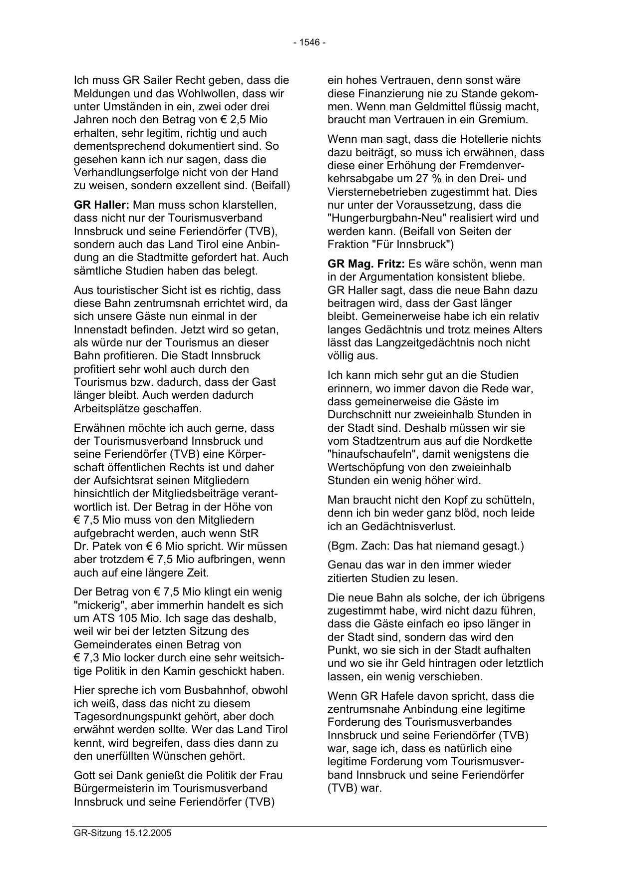 legitime Forderung vom Tourismusverband Innsbruck und seine Feriendörfer
