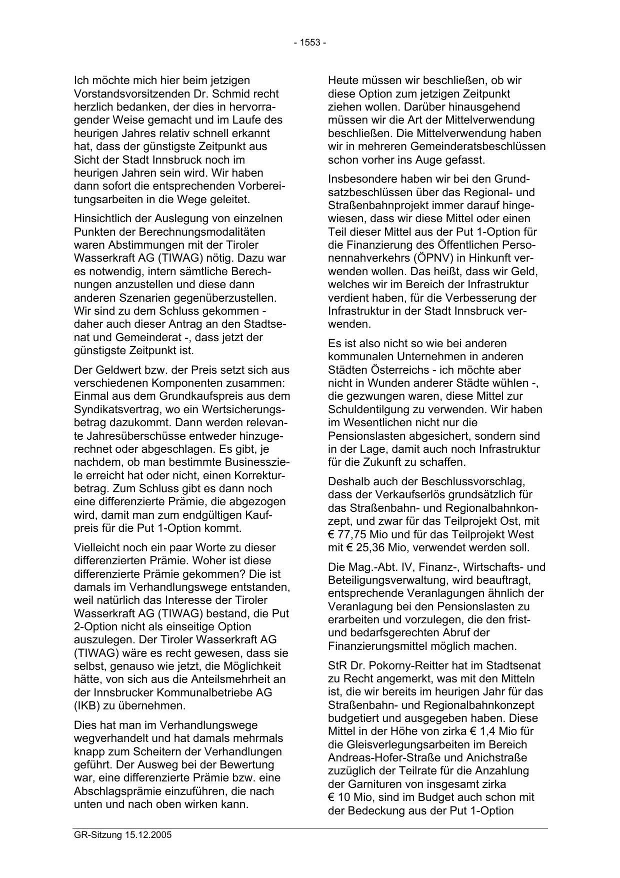 Wasserkraft AG (TIWAG) nötig. Dazu war
