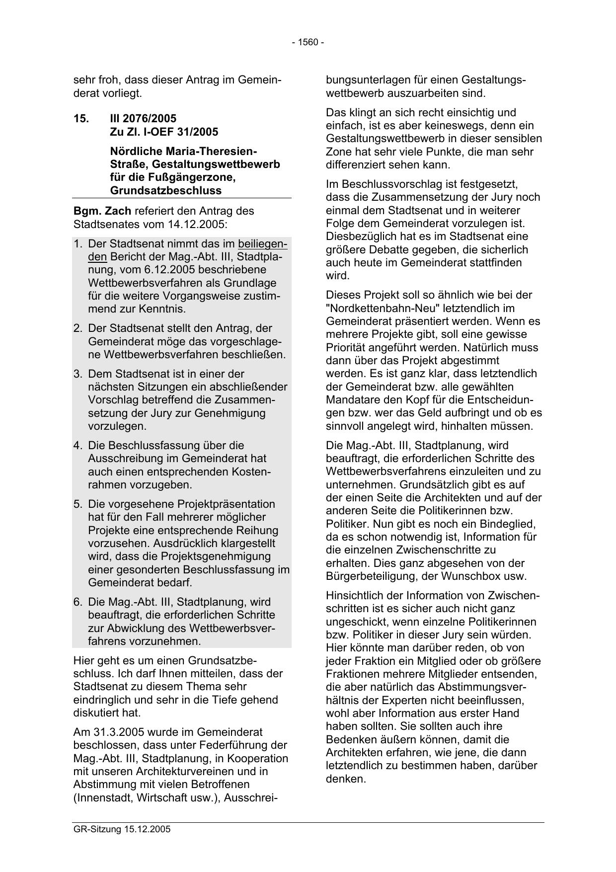 (Innenstadt, Wirtschaft usw.), AusschreiGR-Sitzung 15.12.2005