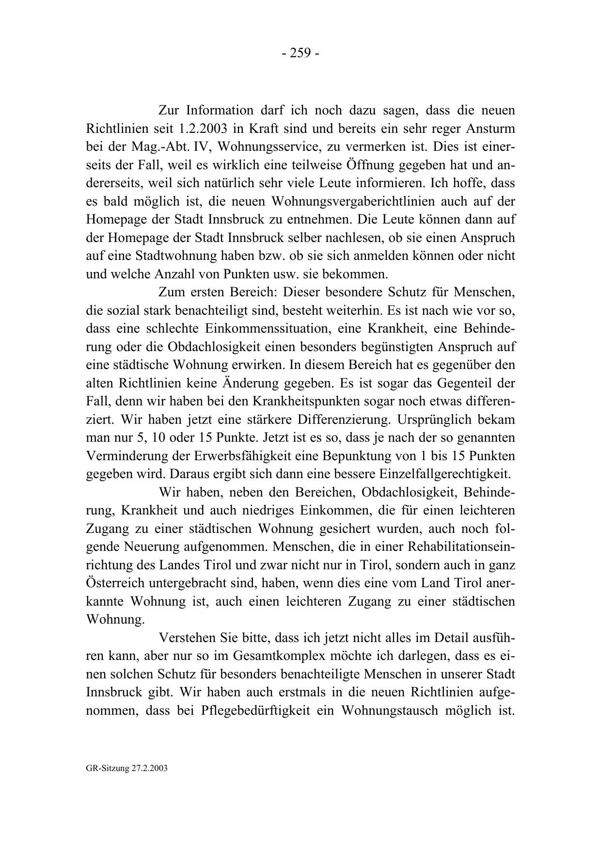 Zugang zu einer städtischen Wohnung gesichert wurden, auch noch folgende Neuerung aufgenommen. Menschen, die in einer Rehabilitationseinrichtung des Landes Tirol und zwar nicht nur in Tirol, sondern auch in ganz