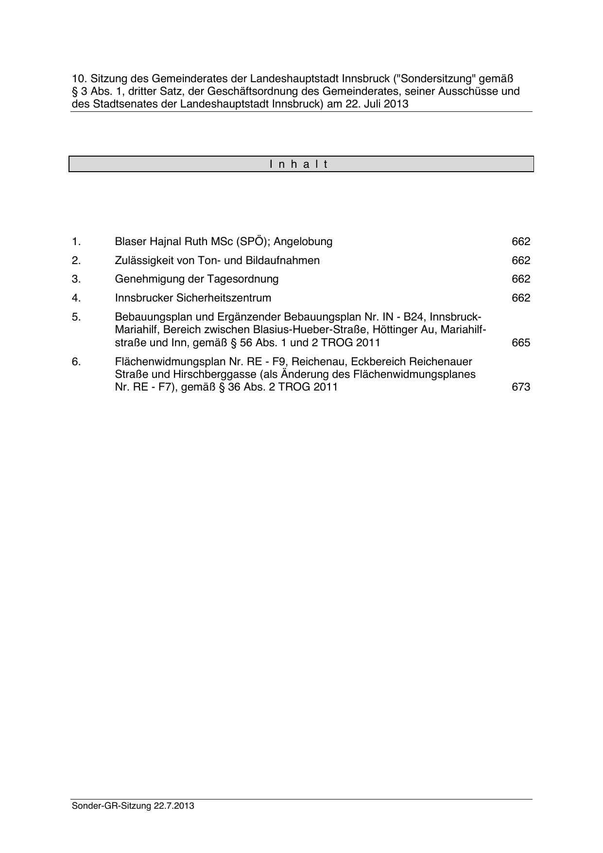 des Stadtsenates der Landeshauptstadt Innsbruck) am 22. Juli 2013