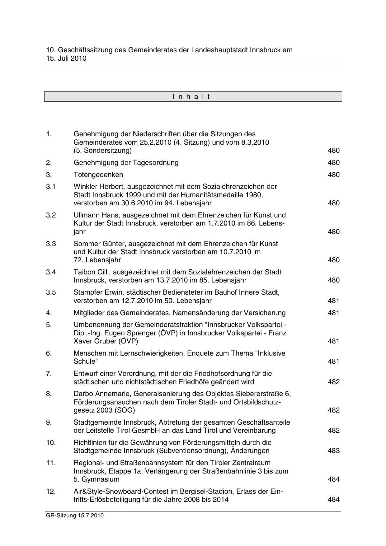 10. Geschäftssitzung des Gemeinderates der Landeshauptstadt Innsbruck am