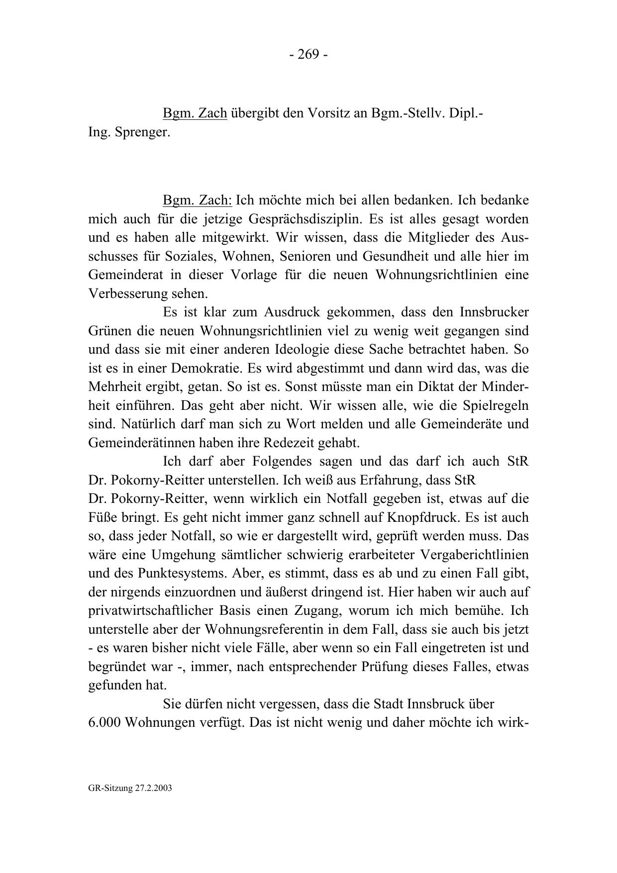unterstelle aber der Wohnungsreferentin in dem Fall, dass sie auch bis jetzt