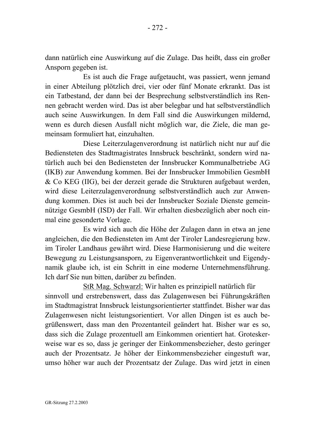 wird diese Leiterzulagenverordnung selbstverständlich auch zur Anwendung kommen. Dies ist auch bei der Innsbrucker Soziale Dienste gemeinnützige GesmbH (ISD) der Fall. Wir erhalten diesbezüglich aber noch einmal eine gesonderte Vorlage.