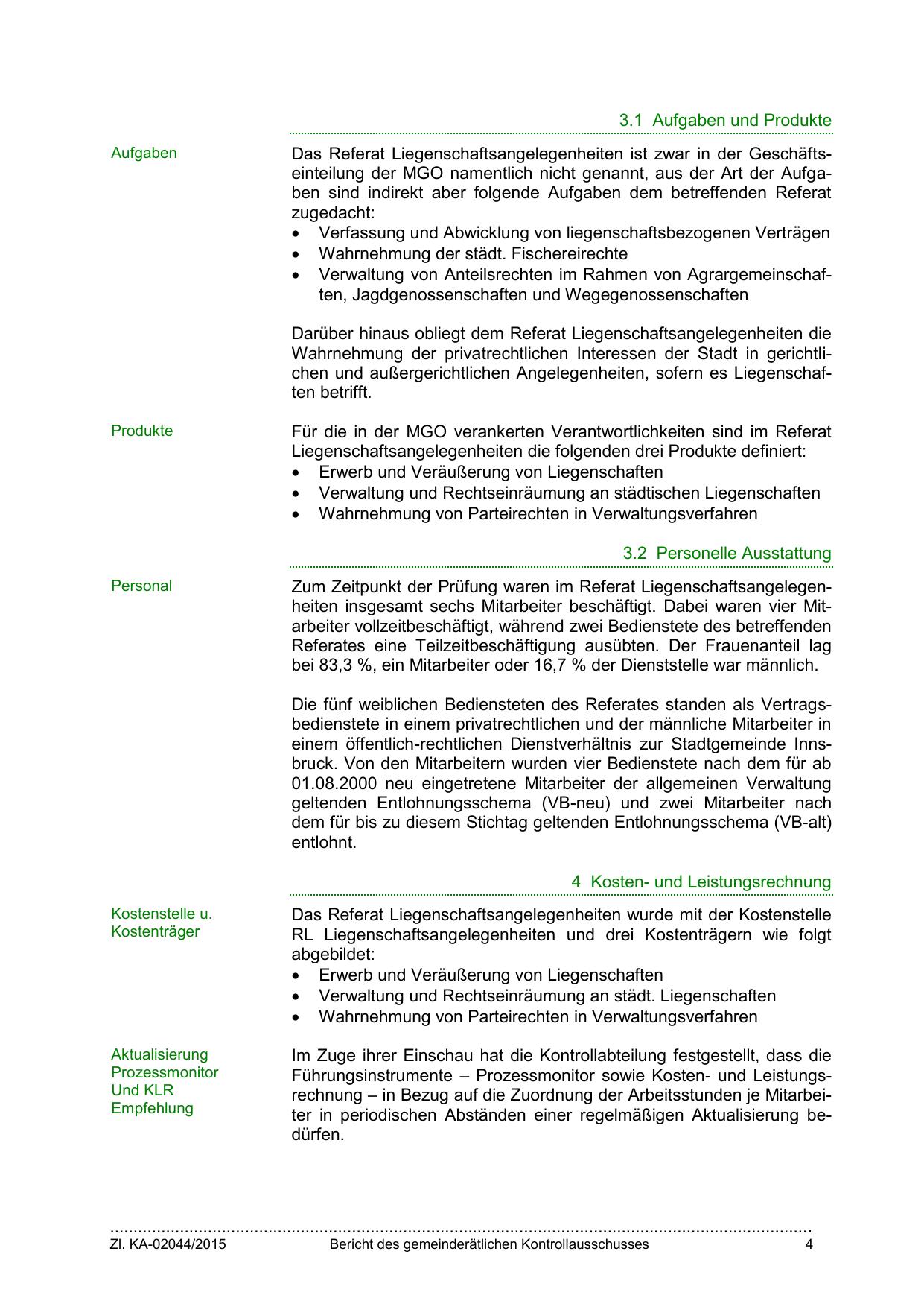 einem öffentlich-rechtlichen Dienstverhältnis zur Stadtgemeinde Innsbruck. Von den Mitarbeitern wurden vier Bedienstete nach dem für ab