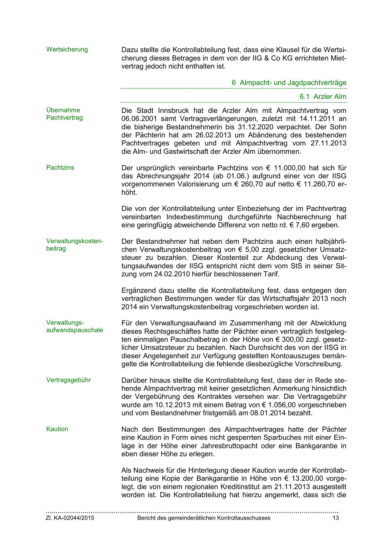Darüber hinaus stellte die Kontrollabteilung fest, dass der in Rede stehende Almpachtvertrag mit keiner gesetzlichen Anmerkung hinsichtlich