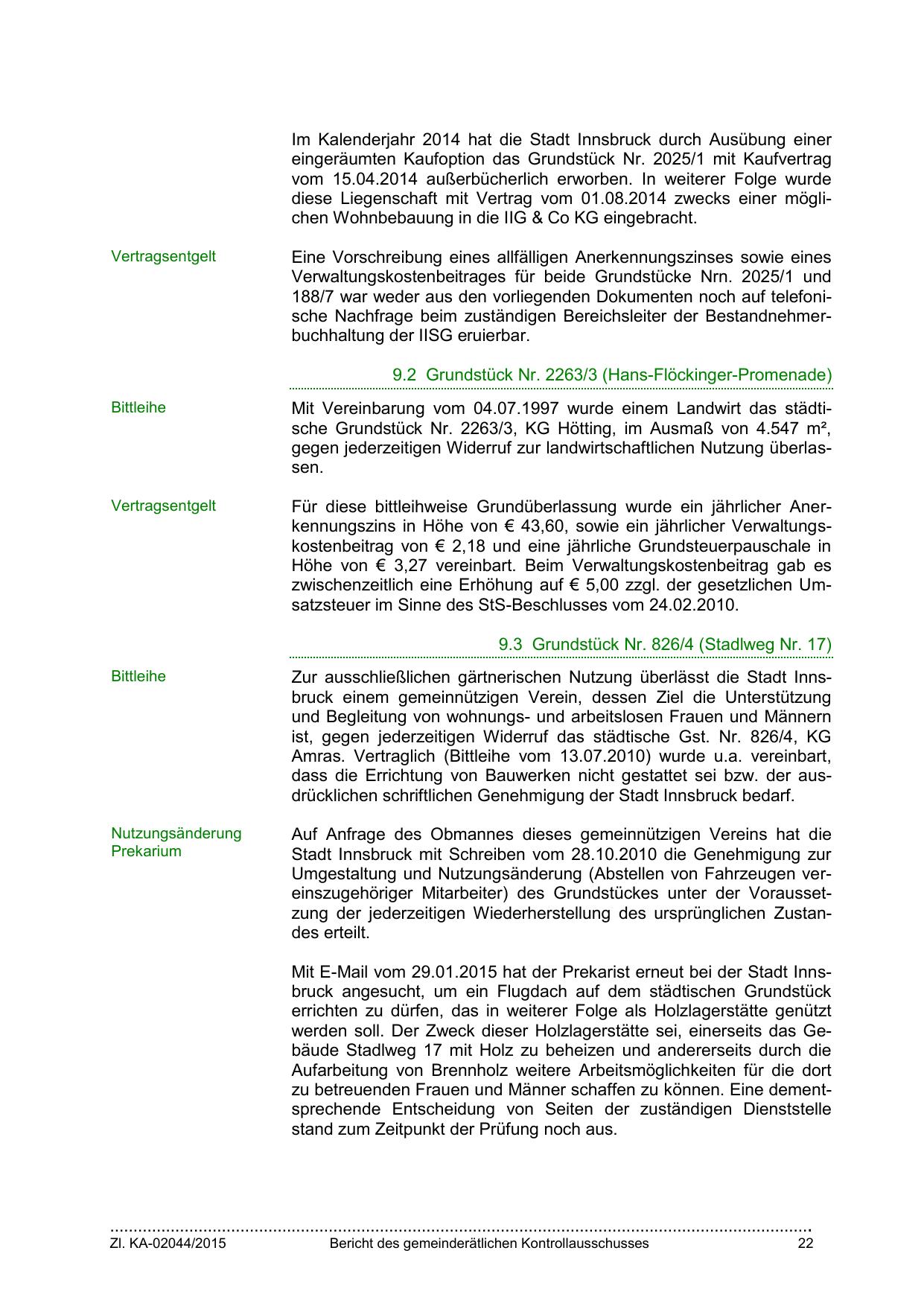 Mit E-Mail vom 29.01.2015 hat der Prekarist erneut bei der Stadt Innsbruck angesucht, um ein Flugdach auf dem städtischen Grundstück