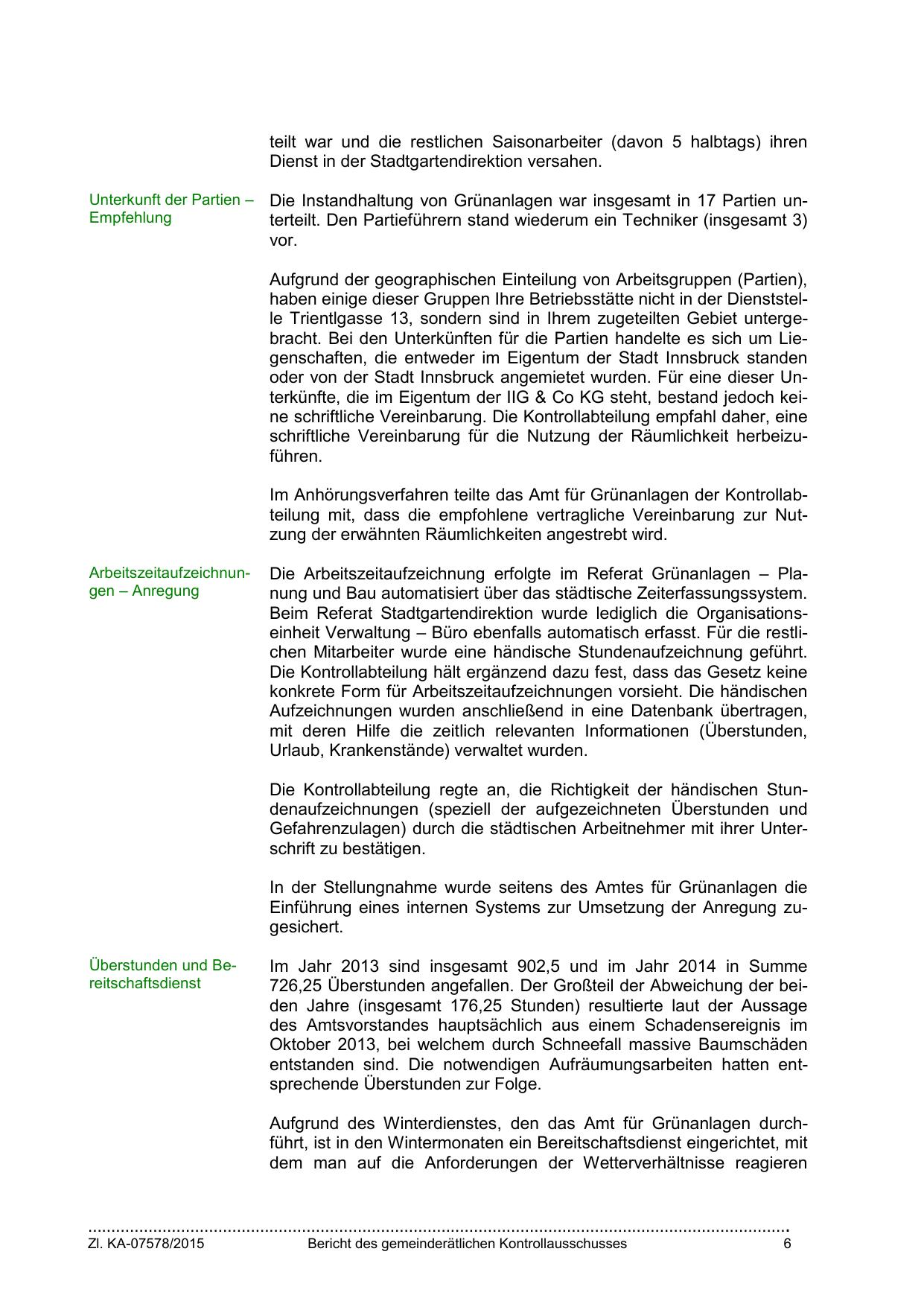 726,25 Überstunden angefallen. Der Großteil der Abweichung der beiden Jahre (insgesamt 176,25 Stunden) resultierte laut der Aussage