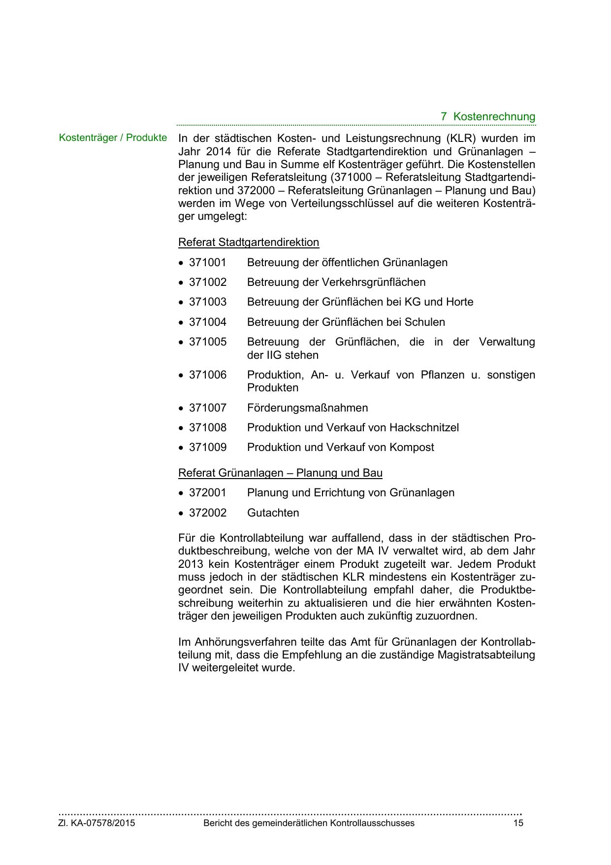 muss jedoch in der städtischen KLR mindestens ein Kostenträger zugeordnet sein. Die Kontrollabteilung empfahl daher, die Produktbeschreibung weiterhin zu aktualisieren und die hier erwähnten Kostenträger den jeweiligen Produkten auch zukünftig zuzuordnen.