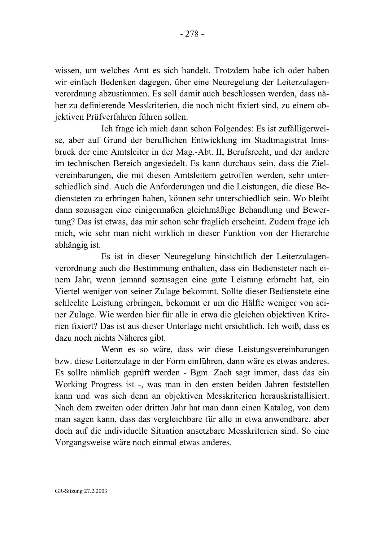 Ich frage ich mich dann schon Folgendes: Es ist zufälligerweise, aber auf Grund der beruflichen Entwicklung im Stadtmagistrat Innsbruck der eine Amtsleiter in der Mag.-Abt. II, Berufsrecht, und der andere