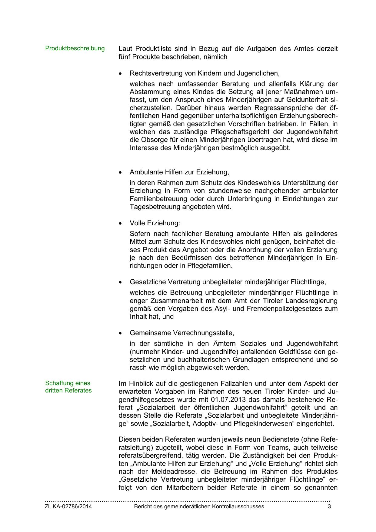 erwarteten Vorgaben im Rahmen des neuen Tiroler Kinder- und Jugendhilfegesetzes wurde mit 01.07.2013 das damals bestehende Referat „Sozialarbeit der öffentlichen Jugendwohlfahrt“ geteilt und an