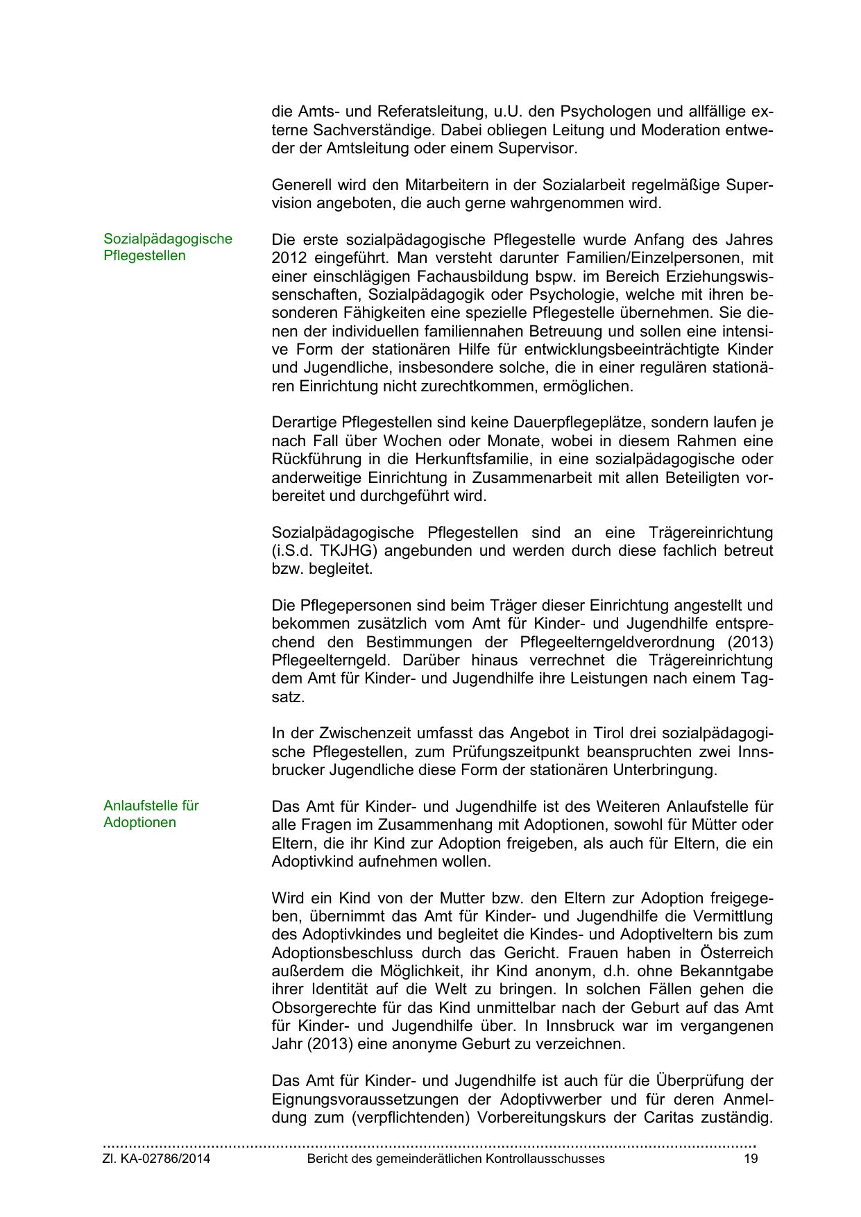 In der Zwischenzeit umfasst das Angebot in Tirol drei sozialpädagogische Pflegestellen, zum Prüfungszeitpunkt beanspruchten zwei Innsbrucker Jugendliche diese Form der stationären Unterbringung.