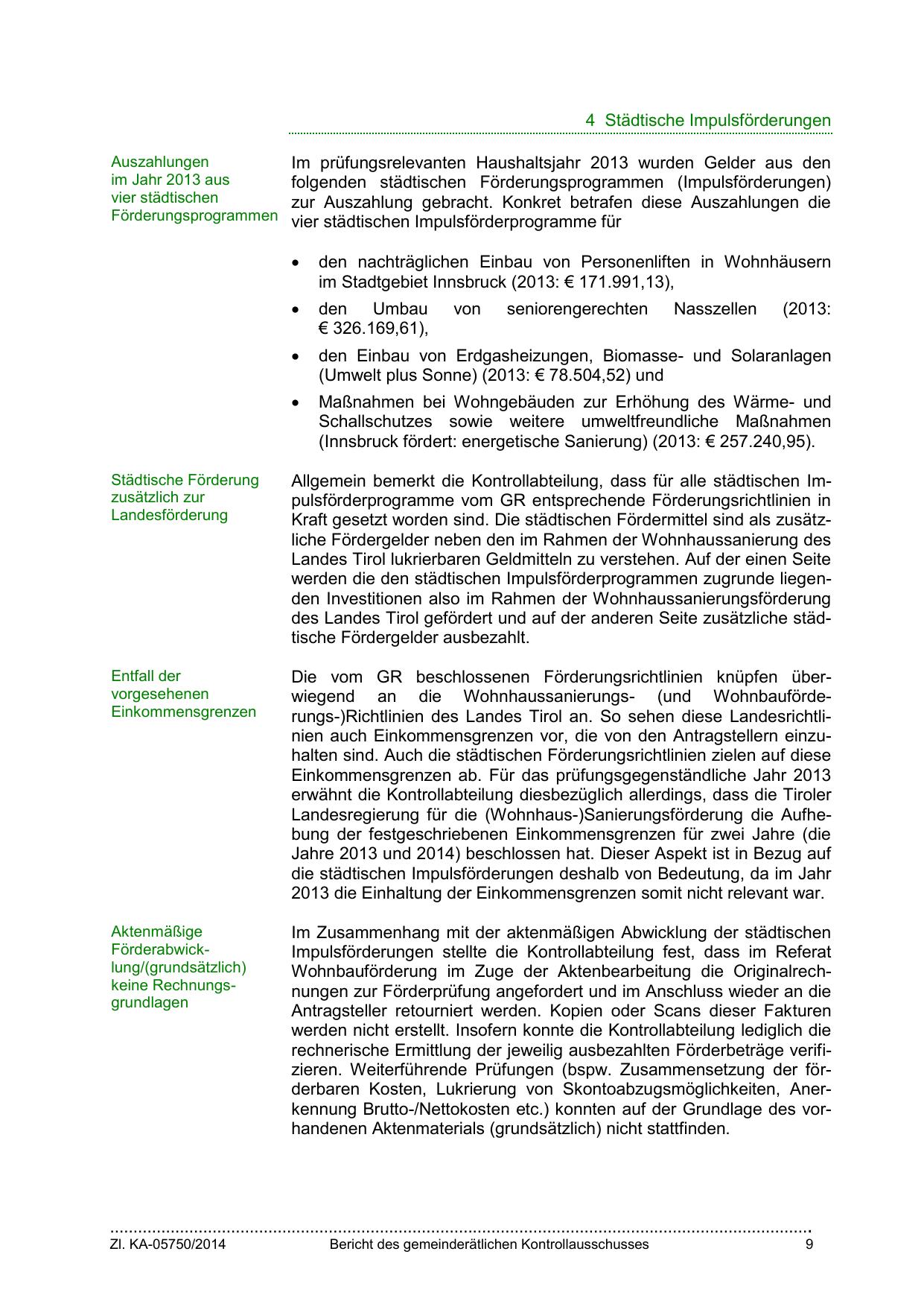 Impulsförderungen stellte die Kontrollabteilung fest, dass im Referat